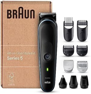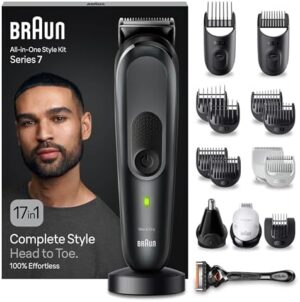 Braun Recortadora de Barba Series 7 Máquina Cortar Pelo, Cortapelos Hombre, Depiladora Corporal para Cara, Pelo, Orejas, Nariz y Cuerpo, Recargable con 100 Min Autonomía, MGK7491, Negro