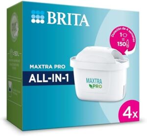 BRITA Cartucho de filtro de agua MAXTRA PRO All-in-1 pack 4 – Recambio original BRITA que reduce las impurezas, el cloro, los pesticidas y la cal para obtener agua del grifo con mejor sabor