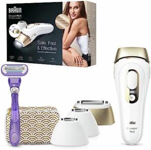 Braun Silk-expert Pro 5 Depiladora Mujer/Hombre Luz Pulsada IPL, Cabezal de Precisión Ancho y Maquinilla de Afeitar Venus, Alternativa a la Depilación Láser en Casa, PL 5149, Blanca/Dorada