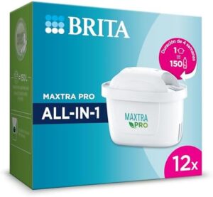 BRITA Cartucho de filtro de agua MAXTRA PRO All-in-1 pack 12 – Recambio original BRITA que reduce las impurezas, el cloro, PFAS, los pesticidas y la cal para obtener agua del grifo con mejor sabor