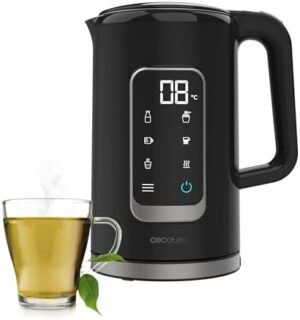 Cecotec Hervidor de Agua Eléctrico de 1,7 Litros con Pantalla Táctil Thermosense 500 Touch. 2200W, Interior de Acero Inoxidable, 5 Niveles de Temperatura, Apagado Automático, Negro