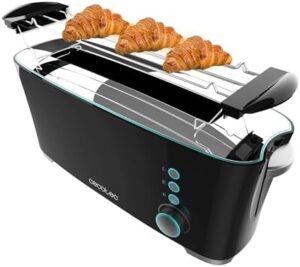 Cecotec Tostador Toast&Taste Extra B, 1000W de Potencia, Doble ranura larga para 2 Tostadas, Ranura XL, Apagado y Pop-up Automático, Recogemigas, Varillas Superiores, Autocentado
