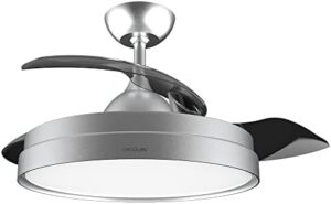 Cecotec Ventilador de Techo con Aspas Retráctites y Lámpara EnergySilence Aero 4280 Invisible Steel. 40 W, Diámetro 42″ (106cm), Temporizador, 3 Tonos de Luz, Función Verano-Invierno
