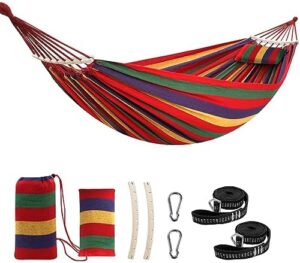 Chihee Hamaca de algodón Gran Hamaca de Camping Suave y Transpirable Soporta hasta 300KG Hamaca de árbol portátil con Barra separadora Desmontable Almohada 2 Webbings Fuerte 2 mosquetones