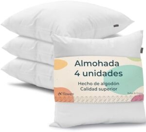 Cojines Sofa 50×50 Almohadones 4 Unidades Decorativos Relleno Cojin Hipoalergénico Antiácaros y Suave Cuadrado con Funda Exterior Almohada Respirable en Cotton/Polyest. Blanco Extraíble y Lavable