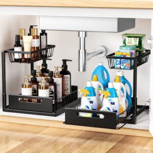 Cocolemon Organizador Bajo Fregadero Cocina, 2 Paquete Metal Organizador Extraíble Estante Almacenamiento Debajo Fregadero Forma de L, Negro