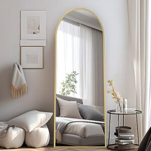 COFENY Espejo de Pie Cuerpo Entero Curvado, Espejos Grandes de Pared con Marco de Aluminio 40 x 150 cm, Espejo de Pie Inclinado o Colgante para Salón, Dormitorio, Entrada, Dorado