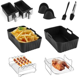 CINEMON Accesorios Freidora de Aire, Molde Silicona Freidora de Aire Sin Aceite, Accesorios Freidora Sin Aceite para Ninja (AF300EU/ AF400EU) Dual Zone Air Fryer – Fácil de Limpiar(8 Piezas, Negro)