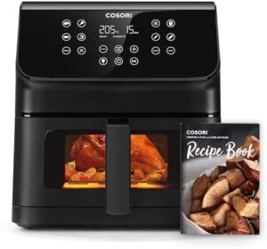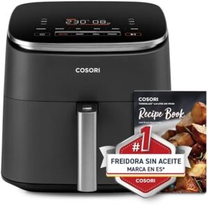COSORI Freidora de Aire 5,5 L, Air Fryer con 100 Recetas en Español, Freidora sin Aceite con 13 Funciones, Pantalla Táctil LED, Cocción Rápida y Saludable, Cesta Antiadherente, Temporizador, Negra