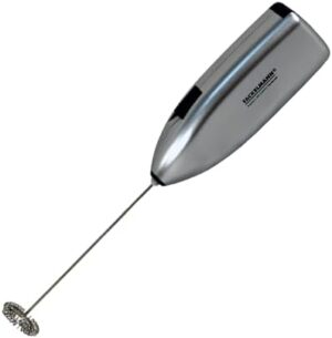 Fackelmann Espumador de Leche, Mini Batidor Capuchino, Capuccino, Té Matcha, Batidos de Proteínas, Salsas y Aliños, Varilla de Acero Inoxidable, Funcionamiento Sin Cables, Gris, 20.5 x 3.8 cm, 1 Ud.