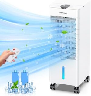 HONMICON Aire Acondicionado Portatil 3 en 1, Enfriador de Aire, 3 Modos y 3 Velocidades, Tanque de 4,5L, Temporizador 1-12H, 60°/120° Oscilación, Control Remoto, Enfriamiento Rápido, Silencioso