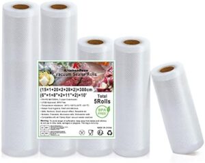 KitchenBoss Bolsas Vacio Alimentos Bolsas De Envasar Al Vacio:Bolsas Para Envasar al Vacio Alimentos BPA Free, Rollos Envasadora al Vacio para Sous Vide Cocina y De Vacío,5 Rollos 15/20/28x300cm