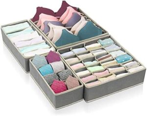 KIPIDA Organizadores de Cajones Robusto, 4 Cajas Plegable Organizador de Almacenamiento para Sujetadores, Ropa Interior,Calcetines, Corbatas, Bufandas y Pañuelos-Gris