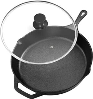 Kichly 2 en 1 Olla De Hierro Fundido Pre-Sazonada Con Tapa Para Asar – Cocinar Al Horno, Freír, Asar, Guisar, Dorar Y Parrilla – Cocina De Interior Y Exterior