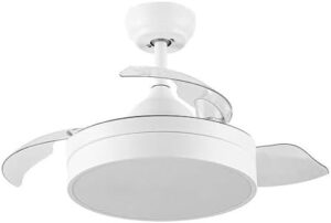 M Ledme – Ventilador de Techo con luz Led Messe 72W Blanco, Mando a Distancia, Bajo consumo, motor DC, 6 velocidades, Silencioso ,4 Aspas desplegables, función verano-invierno, temporizador