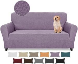 Lydevo Funda de Sofá Elastica 3 Plazas Nuevo Jacquard Cubierta para Sofá con 2 Fundas de Almohada Antideslizante Protector para Sofa con Reposabrazos para Mascotas,Jacquard Táctil#Púrpura