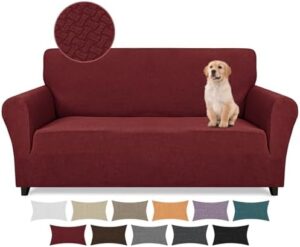 Lydevo Funda de Sofá Elastica 3 Plazas Nuevo Jacquard Cubierta para Sofá con 2 Fundas de Almohada Antideslizante Protector para Sofa con Reposabrazos para Mascotas,Jacquard Táctil#Burdeos