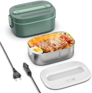 Love begans Fiambrera Electrica, 80 W 1.5 L Calentador Comida, 12 V/24 V/220 V,3 en 1 Lancheira Portatil Rápida Aquecedor con Cubiertos y Bolsa de Aislamiento para Coche, Camión, Oficina