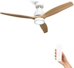 Mellerware – Ventilador de Techo con Mando a Distancia Brizy Bright | 30 W | 6 Velocidades | Ultra silencioso | 3 Aspas 132 de Diámetro | Función Verano-Invierno | Temporizador | LED | Lightwood