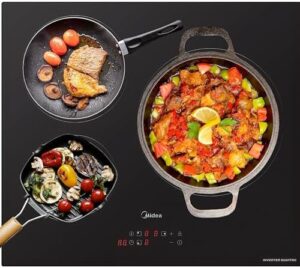 MIDEA Placa Inducción 3 fuegos 60 cm 7400 W – Vitroceramica Induccion Integrada con Panel de control tactil, Inverter quattro, Booster, Indicador de Luz, Detector de Sartenes y Temporizador
