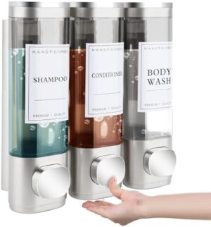 MEKOTRIN Dispensador de jabón para Montaje en Pared, dispensador de jabón líquido, dispensador de jabón de Mano, Gel de Ducha, detergente para Hotel, hogar (Plata)