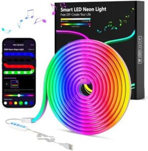 MeRGBW-Home Tiras LED Neon 3M, Luces LED Strip RGB de Neón de DIY Siliconecon, Control por App, Inteligente Control Segmentado Modo Música y Escena Arcoíris para Habitación Gaming, Fiesta, Dormitorio