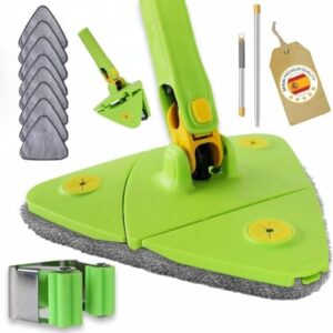 Mopa Triangular Giratoria 360º, 8 Cabezales Lavables, Soporte de Pared, Mopa para Limpiar Azulejos y Paredes, Mopa autoescurrible