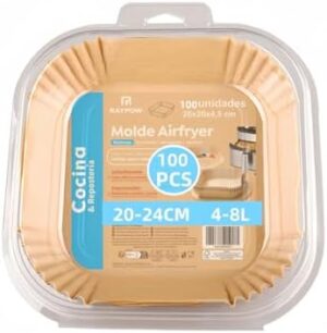 Papel Freidora Aire 20C100 Air Fryer Cuadrado 100 Unidades 20-24 cm moldes Desechable para Horno BPA Free Accesorios para Freidora sin Aceite de 2 a 8 litros (20-24CM-Cuadrado, 100, unidad)