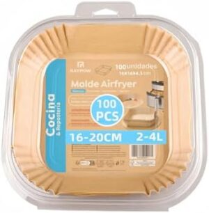 Papel Freidora Aire 16C100 Air Fryer Cuadrado 100 Unidades 16-20 cm moldes Desechable para Horno BPA Free Accesorios para Freidora sin Aceite de 2 a 8 litros (16-20CM-Cuadrado, 100, unidad)