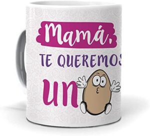 Regalo original dia de la madre. Taza Mamá, te queremos un huevo Regalo madre. Cerámica AAA – 350 ml.