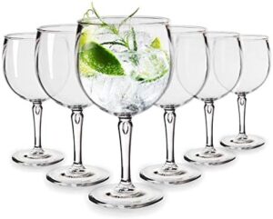 RBDRINKS RB Copa Balón Cocktail Cristal, Gintonic Copas de Vino, Plástico Transparente Irrompible y Reutilizable Vasos de Cristal 45cl, Juego de 6