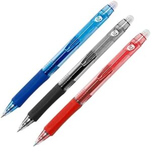 Raylu Paper® – Pack de 3 Bolígrafos Borrables Retráctiles, con Tinta de Gel Híbrida, Colores Azul Rojo Negro, Trazo de 0,7 mm (3 Colores)