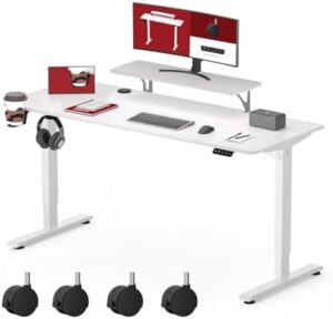 SANODESK 120 x 60 cm SQ1 Escritorio Elevable Eléctrico Standing Desk Mesa Escritorio Elevable con Mesita para Soporte Monitor con 4 Ruedas Tablero Telescópico Bidireccional y Función de Memoria-Blanco