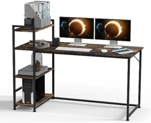 SANODESK FD5 Escritorio para Ordenador 160x60x100cm, Escritorio con Estantería de Almacenamiento de 4 Niveles, Escritorio Gaming, Escritorio de Juegos, Escritorio para PC de Oficina en casa (Marrón)