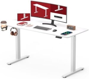 SANODESK QS1 140 x 60 cm Escritorio Elevable Eléctrico con Tablero Escritorio Regulable en Altura Eléctrico Telescópico Bidireccional con Control de Memoria y Tecnología Anticolisión (Blanco)