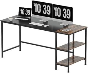 SANODESK FD4 Escritorio Ordenador con Estantería 160×60×75cm Escritorio para Ordenador, Escritorio Gaming, Escritorio de Juegos, Escritorio para hogar, portátil con estantes de Almacenamiento (Negro)