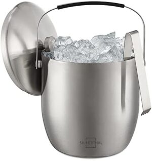 SILBERTHAL Cubiteras acero inoxidable 3 litros | Cubitera hielo con pinzas tapa | Ice bucket | Cubitera botella vino