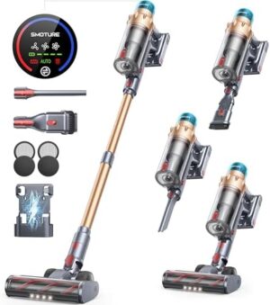 SMOTURE VAC01 Aspiradora sin Cable 45KPA/550W, 60 Minutos, Potente y Vertical, Modo Automático, Pantalla Táctil LED, Carga en Pared, Cepillo Antienredos, Ideal para Suelos Duros y Alfombras