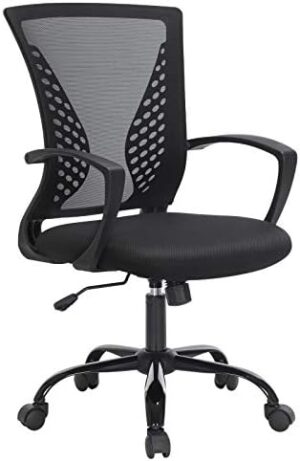 SONGMICS, Silla Giratoria, Regulable en Altura, Función de Inclinación, Respaldo y Asiento de Malla Transpirable, para Estudio de Oficina, Carga Máx. 120 kg, Negro OBN22BK, 58 x 60,5 x (96-104) cm