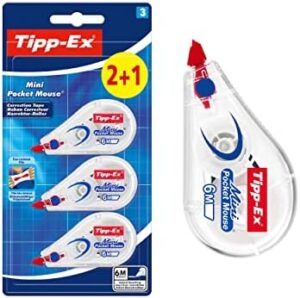 Tipp-Ex Cinta Correctora Mini Pocket Mouse – Óptimo para Material Escolar – 6 m x 5 mm, Pack de 2+1, Color Blanco