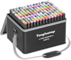 Tongfushop Rotulador de 168 Colores, Marcadores Impermeabile, Marker Pen, Rotuladores Doble Punta con Base y Maletín de Transporte, Adecuado para Bocetos, Cómics y Garabatos