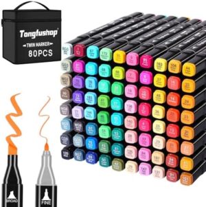 Tongfushop Rotuladores Alcohol de 80 Colores, Seguro y Secado Rápido Rotulador Doble Punta, Marcadores Impermeabile con Base y Maletín de Transporte, para Bocetos, Cómics, Garabatos