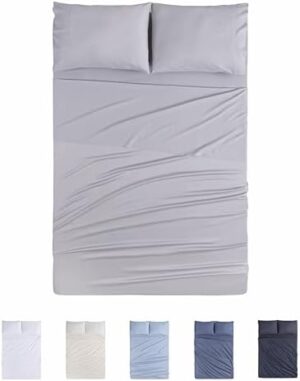Todocama Juego de Sábanas de 4 Piezas – 4002 – Sábana Bajera Ajustable – Encimera – Dos Fundas de Almohada de 50x80cm (Cama 90×190/200 cm, Gris Claro)