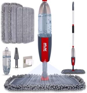 Trapeador en Aerosol para Limpieza de Suelos con 4 Almohadillas Lavables Reutilizables, una Botella Recargable de 360 ml y 1 raspador, 1 Soporte para fregona, Uso Comercial, mopa Plana Seca y húmeda