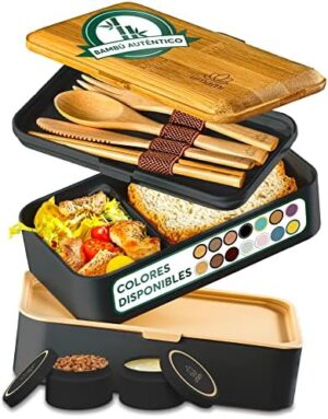 Umami Bento Lunch Box, 2 Recipiente 4 Cubiertos, Compartimentos Estilo Bento Box Japonés, Porta Alimentos Hermético, Microondas y Lavavajillas, Fiambrera Para Adultos, Zero Waste