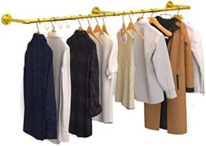 unho Perchero de Pared Industrial, Barra Perchero de Tubo Vintage Desmontable de Longitud Ajustable 90-180cm Carga hasta 30kg (Dorado)