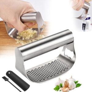 Upgrade 2024 Prensa de ajos de acero inoxidable, picadora de ajo de acero inoxidable resistente, picadora de ajos con pelador y cepillo de limpieza para picar ajos, utensilios de cocina (1 unidad)