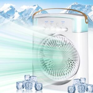 Unipampa Aire Acondicionado Portatil, 4 en 1 Enfriador de Aire, USB Mini Ventilador, 600ml Enfriador Evaporativo, 3 Velocidades, 3 Modos de Niebla, Mini Aire Acondicionado Portátil para Hogar, Oficina