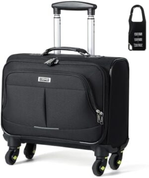Lekespring Maletin Portatil con Ruedas,15.6 Pulgadas Maleta de Piloto Pequeña Trolley Portatil con Ruedas,Impermeable Trolleys para Portátiles con Cerradura TSA,para Viajes Trabajo Negocios,Negro
