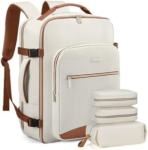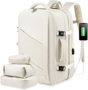 LOVEVOOK Mochila Viaje Cabina Avion Maletas De Viaje Cabina Para Easyjet Ryanair 40L Equipaje De Mano Mujere Hombre Mochila Para Portátil 17 Pulgadas Con Puerto De Carga USB, Beige